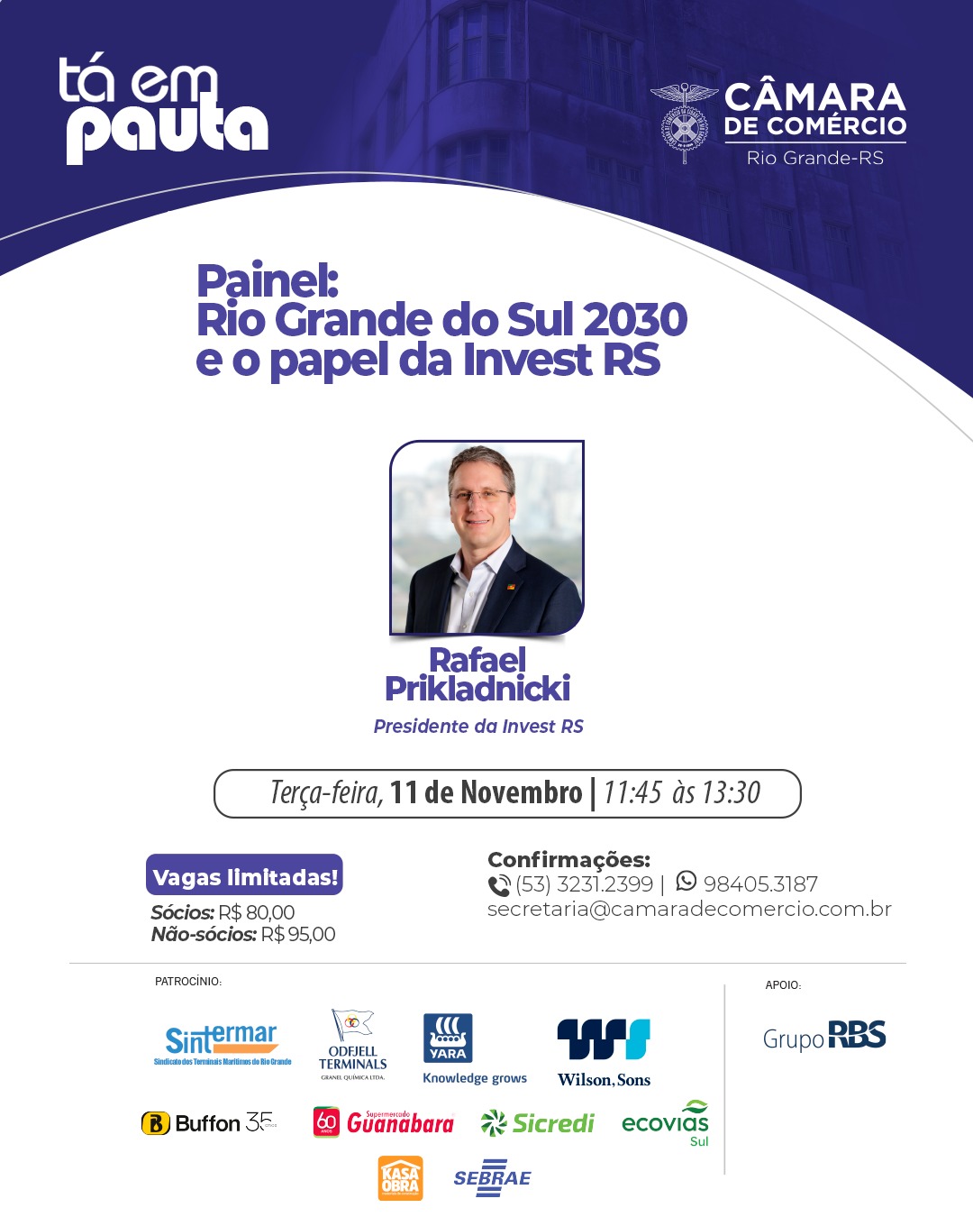 📆Dia 11/11 com o presidente da Invest RS Rafael Prikladnicki